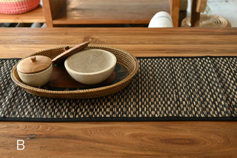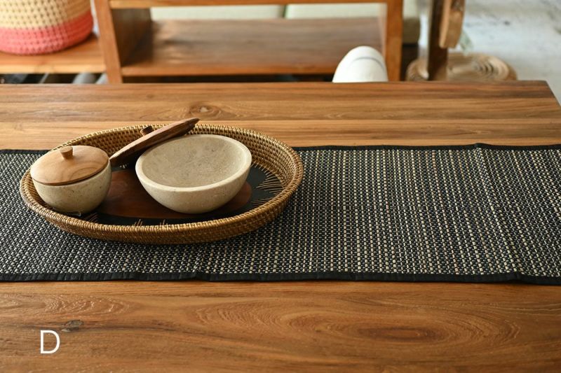 天然素材の優しい質感とシンプルなデザインが特徴のランナー。テーブルや家具にサッと敷くだけで、空間にリゾートのようなリラックス感を広げます。温かみと落ち着きのある雰囲気を作り出し、心地よい空間を演出します。自然素材ならではの優しさが、リラックスできる空間作りにぴったりです。