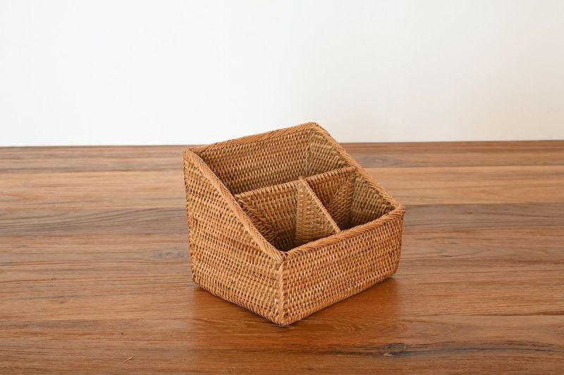 バリ島の熟練職人が一点ずつ丁寧に編み上げた繊細な編み目は、機能性だけでなくインテリアとしての美しさも演出。テーブルの上やデスクまわり、玄関先など、どこに置いても絵になるアイテムです。