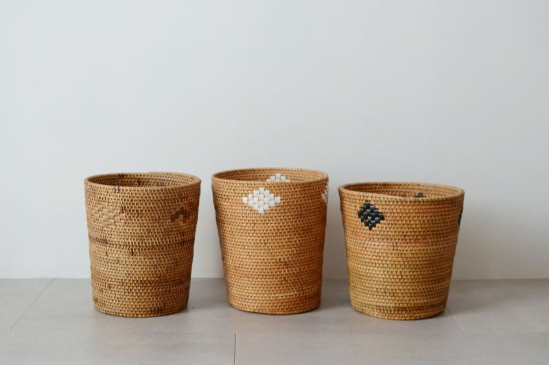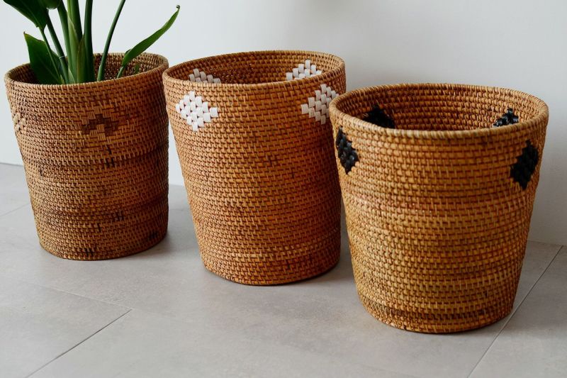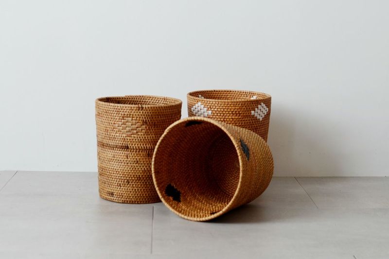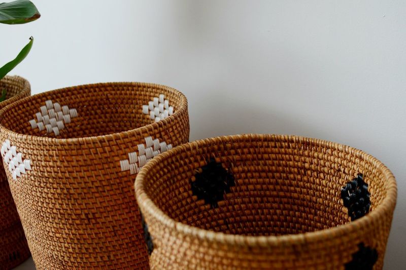 ラタンの収納バスケットは、見えるところに置いてもオシャレ