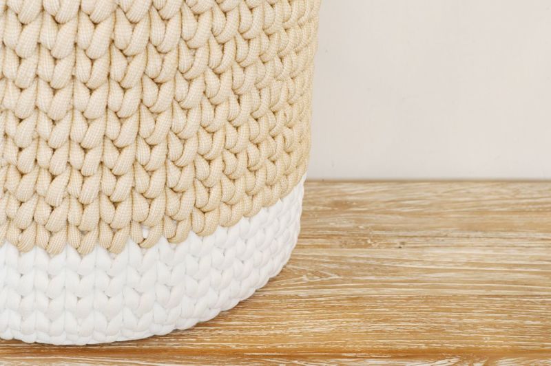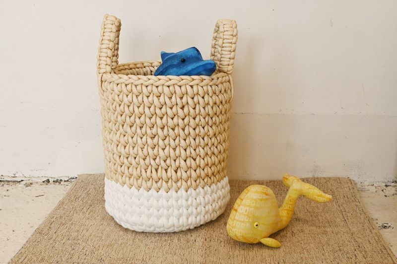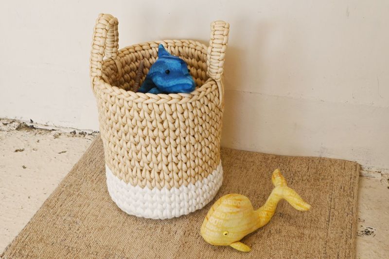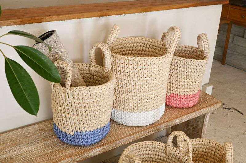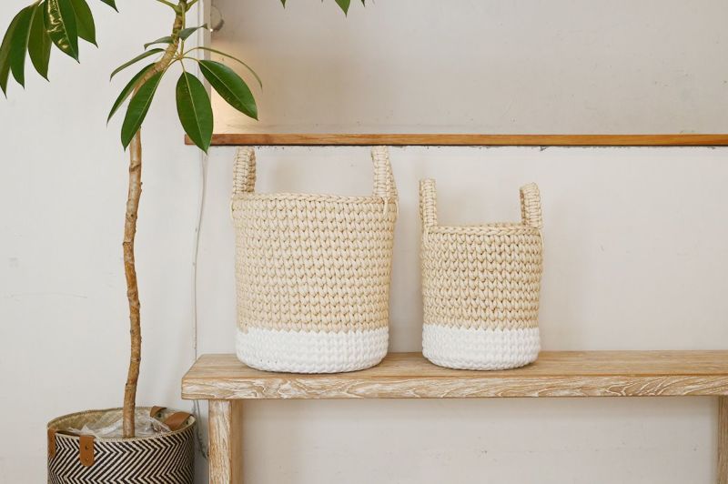 太めのロープを使って編んでいるので、お部屋に置いても柔らかな印象に。優しい風合いと色味で、お子様のおもちゃ入れからランドリーバスケットなど使い道は様々です。カラー違いも用意していますので、お好みでお選びいただけます。