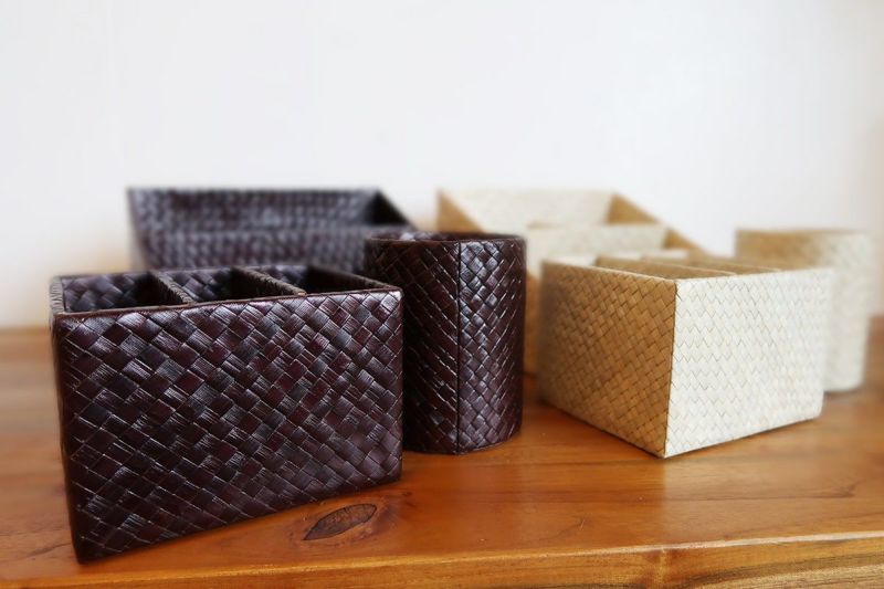 パンダンは東南アジアではお馴染みの素材で、食べ物を包むのに使われることも多い身近な植物のひとつです。日本で言うタコノキと同じ植物です。アジアでは、葉を細いひも状に切って整え、ロープや敷物をはじめとした様々な製品に使われます。 KAJAのパンダン製品は、1点1点ハンドメイドで作られています。