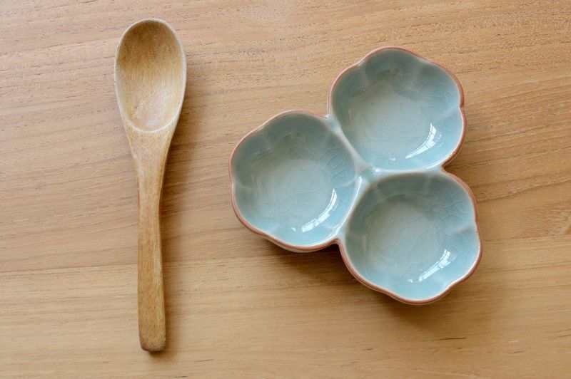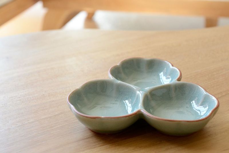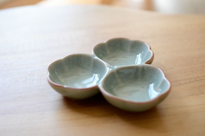 本来は調味料を入れるプレートですが、使い方は自由です。パンを食べるときのジャムを数種類入れたり、お酒のおつまみやナッツをちょこっとずつ盛り合わせたり。ごはんのお伴(梅干し、昆布、ふりかけなど)を入れてもかわいいです。テーブルにパッとお花が咲いたような、愛らしさも魅力です。