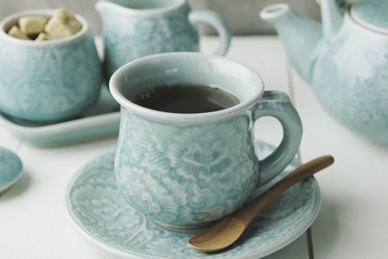 セラドン焼き カップ&ソーサー(フラワー)
