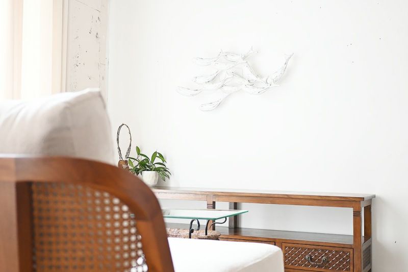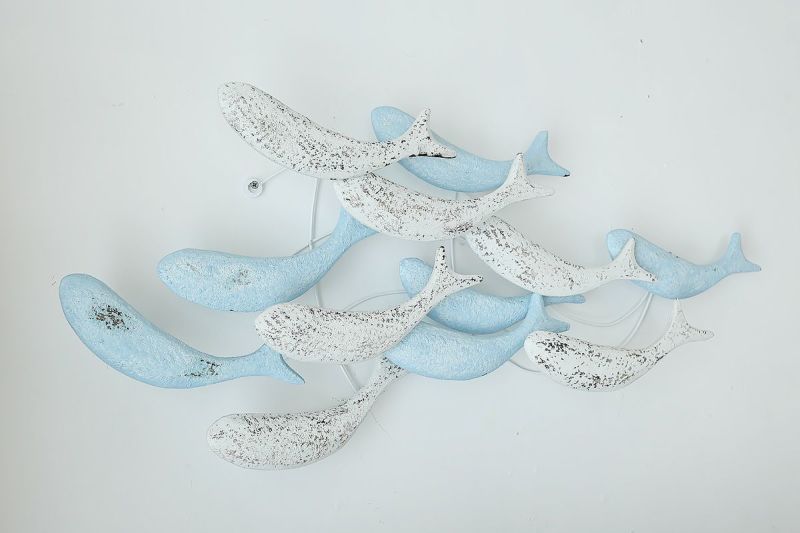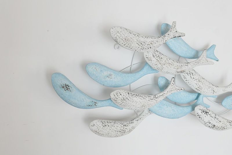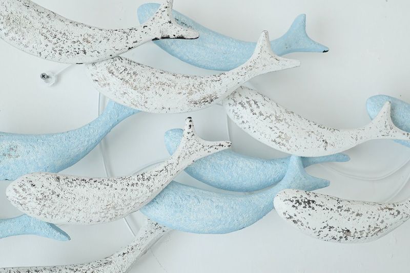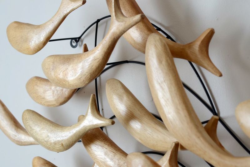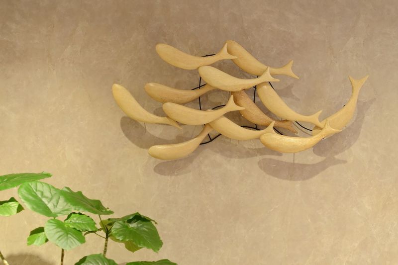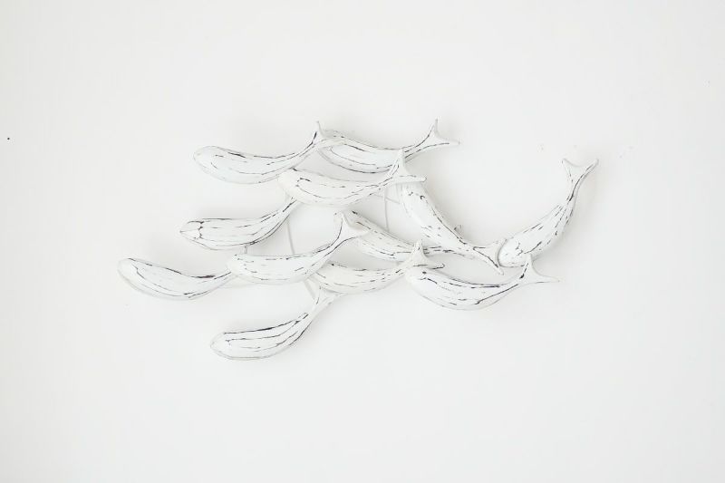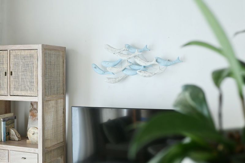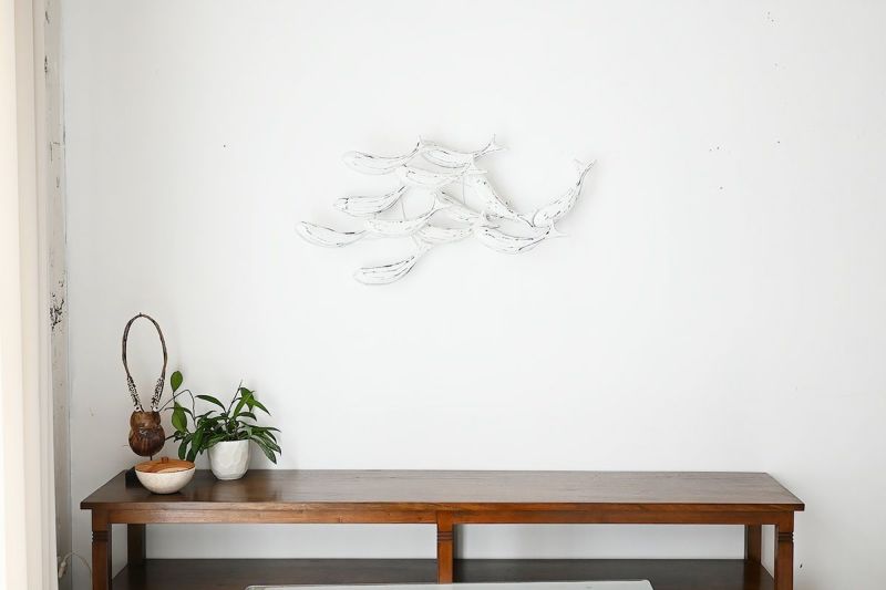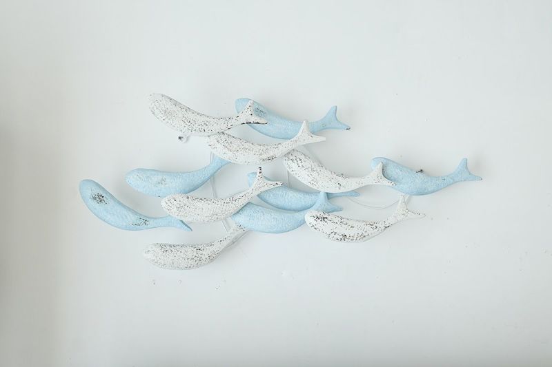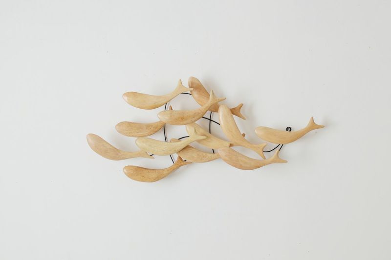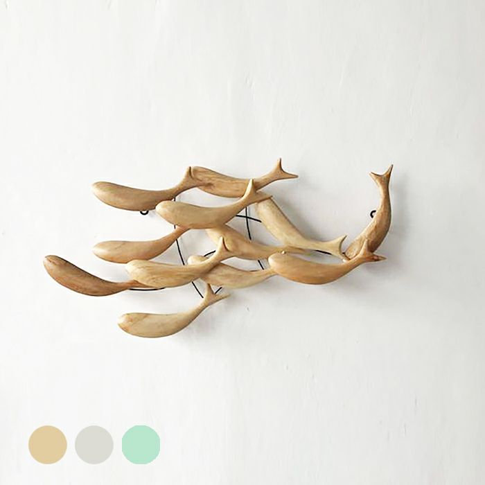 木製の魚が群れをなして泳ぐ、ユニークで遊び心のある壁掛けオブジェです。壁にひとつ飾るだけで、いつものリビングに優しい雰囲気をもたらします。 ナチュラルに加え、ホワイトとブルー・ホワイトとカラー展開が増えました。