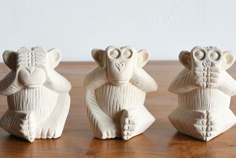 「見ざる言わざる聞かざる」3匹の猿のオブジェ