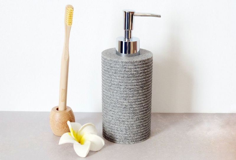 シックなストーン調の液体タイプディスペンサーです。 中身を入れ替えるだけで、いつもの洗面がモダンで落ち着いた印象に。 シンプルなので、和モダン空間、リゾート空間、など様々なテイストに溶け込みます。 洗面スペースはもちろん、キッチンにもおすすめです。