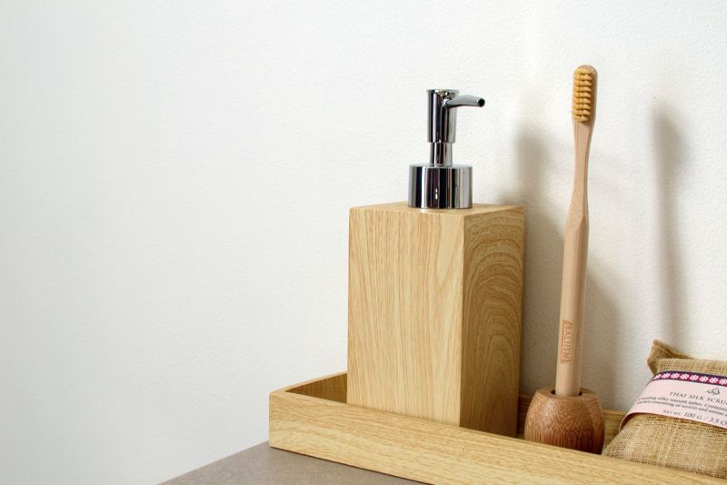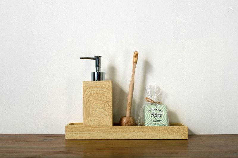 木目調で明るい空間を演出するトレー。アクセサリー置きやちょっとした洗面小物を置くのにぴったりです。 また、同じシリーズのディスペンサーと揃えれば統一感のある洗面空間に。
