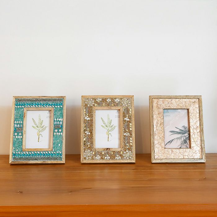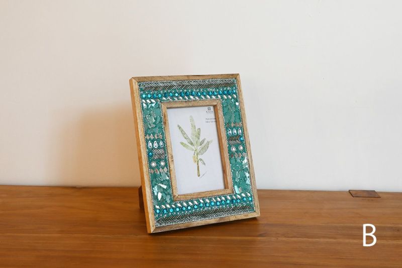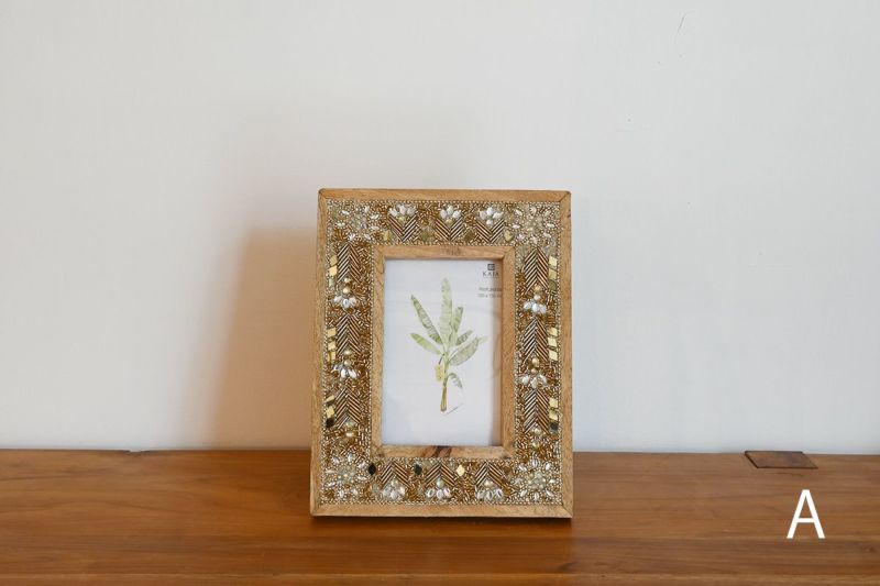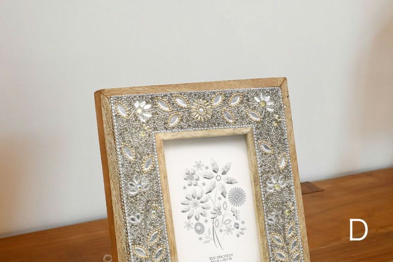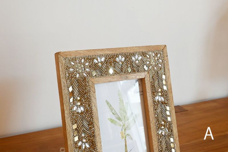 ため息が出るほど繊細で華やかな、ビーズデコレーションが施されたビーズウッドフレーム。 ひとつひとつ丁寧にあしらわれたビーズが、角度によって上品な輝きを放ち、お部屋に華やぎと温かみをプラスしてくれます。