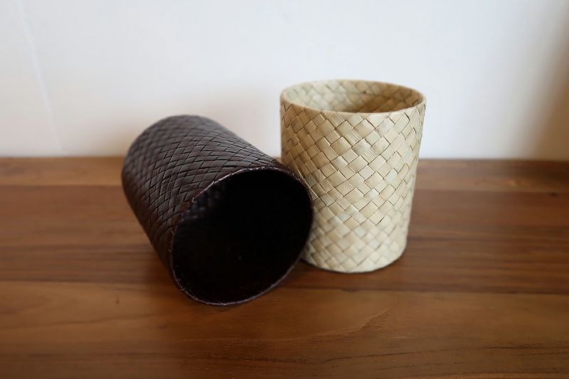 パンダンは東南アジアではお馴染みの素材で、食べ物を包むのに使われることも多い身近な植物のひとつです。日本で言うタコノキと同じ植物です。アジアでは、葉を細いひも状に切って整え、ロープや敷物をはじめとした様々な製品に使われます。 KAJAのパンダン製品は、1点1点ハンドメイドで作られています。
