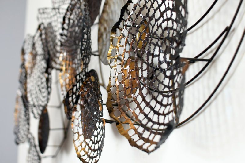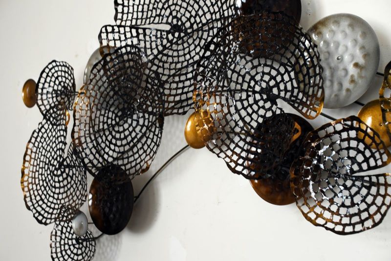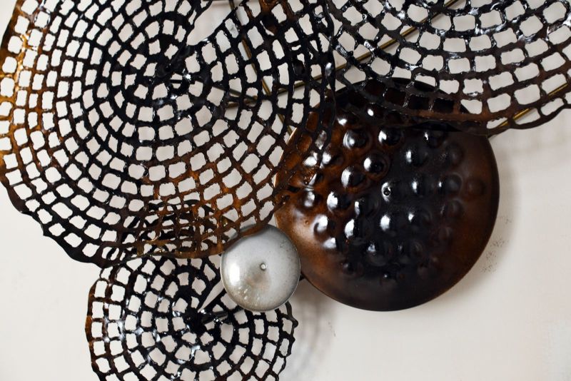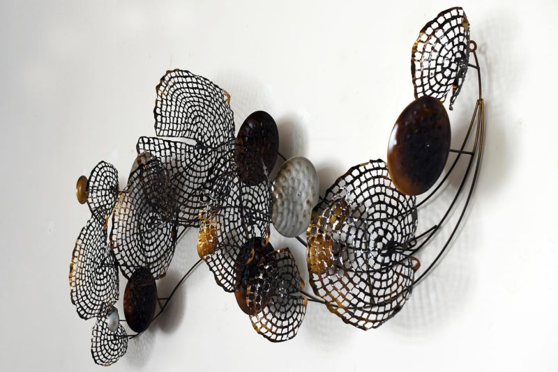 丸いモチーフが連なった独特なデザインは睡蓮の葉を思わせます。睡蓮の葉というとアジアンな印象がありますが、シックな色味とほどよい光沢感がモダンスタイルにも映えます。硬質なアイアン素材を丸いモチーフで和ませて、取り入れやすくスタイリッシュに仕上げました。