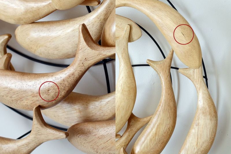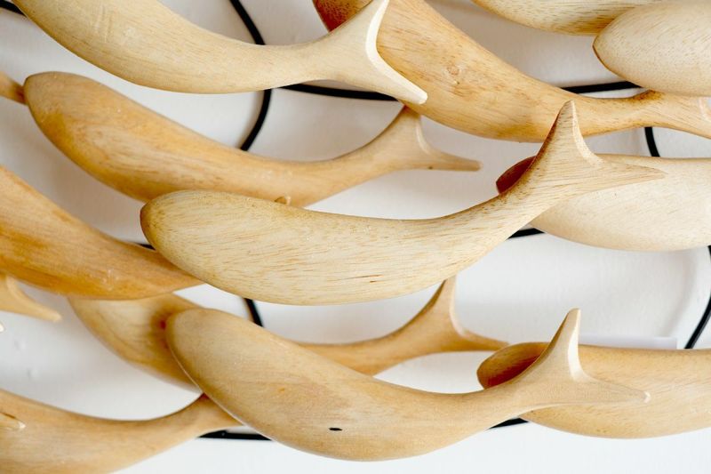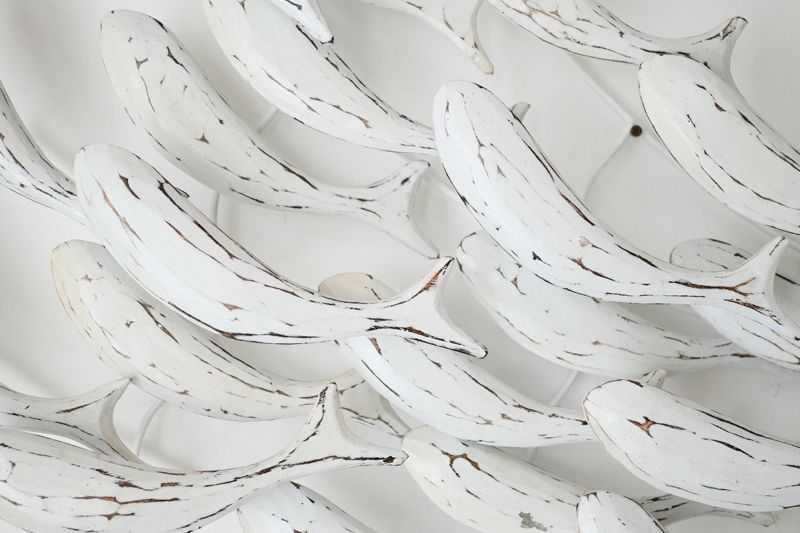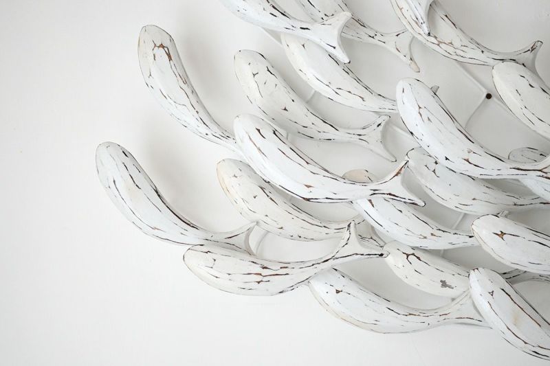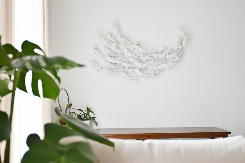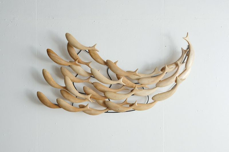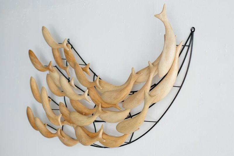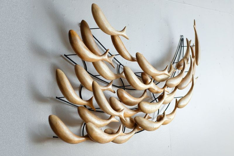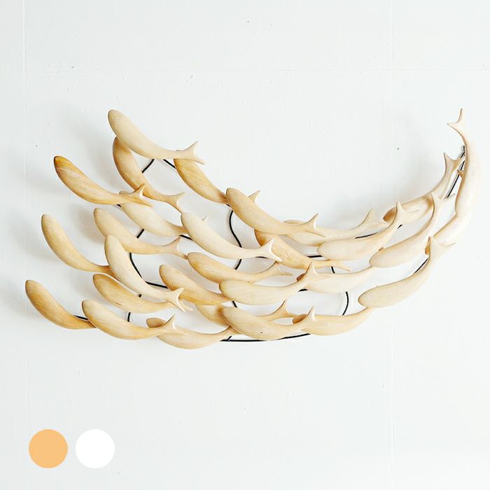 木製の魚が群れをなして泳ぐ、ユニークで遊び心のある壁掛けオブジェです。空間が少しさみしい時、壁にひとつオブジェがあるだけでお部屋の印象が華やかになります。リビングルームやベッドルームに飾れば、魚のシンプルなシルエットに癒されます。