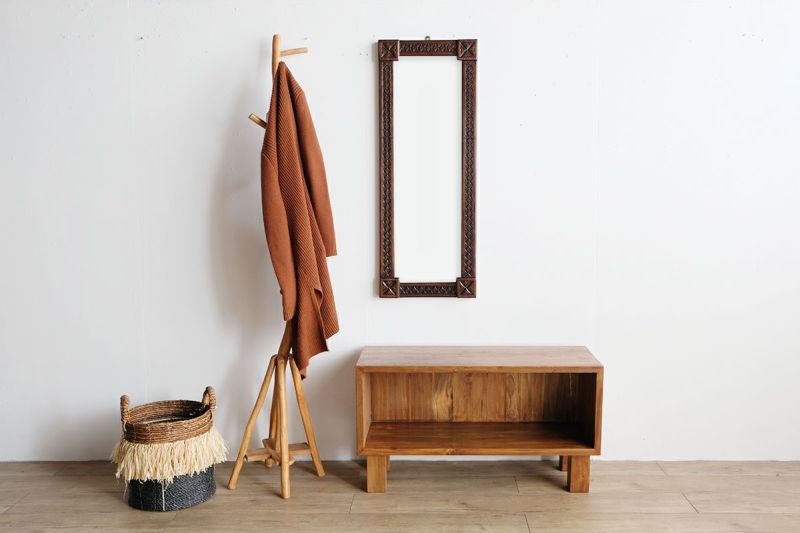 美しいレリーフの入ったウッドフレームのミラーです。このレリーフは、インドネシアの職人がひとつひとつ均一に彫り上げる手仕事の技。硬いチーク材をここまで精巧な柄に彫ることができる職人は非常に希少です。 オリジナリティがぐっと高まり、こだわりを感じさせるミラーです。お部屋にあわせやすいブラウンと、上品なグレイウォッシュ。2つのカラーをご用意しています。