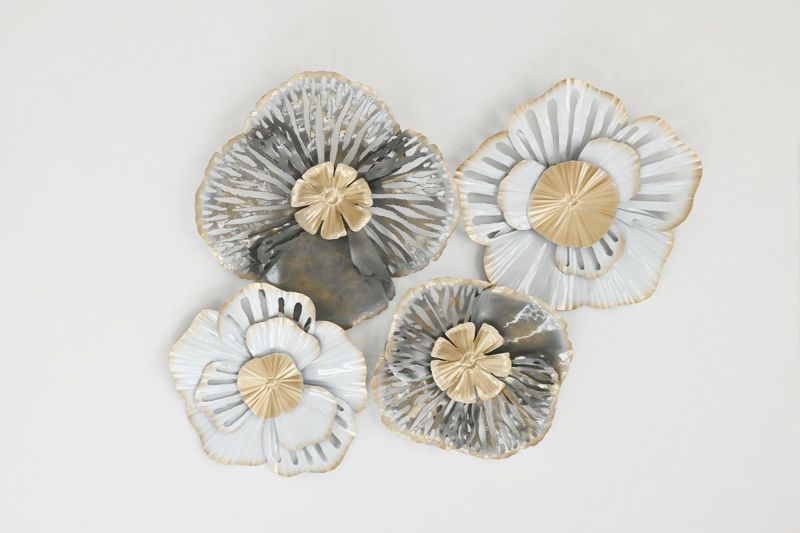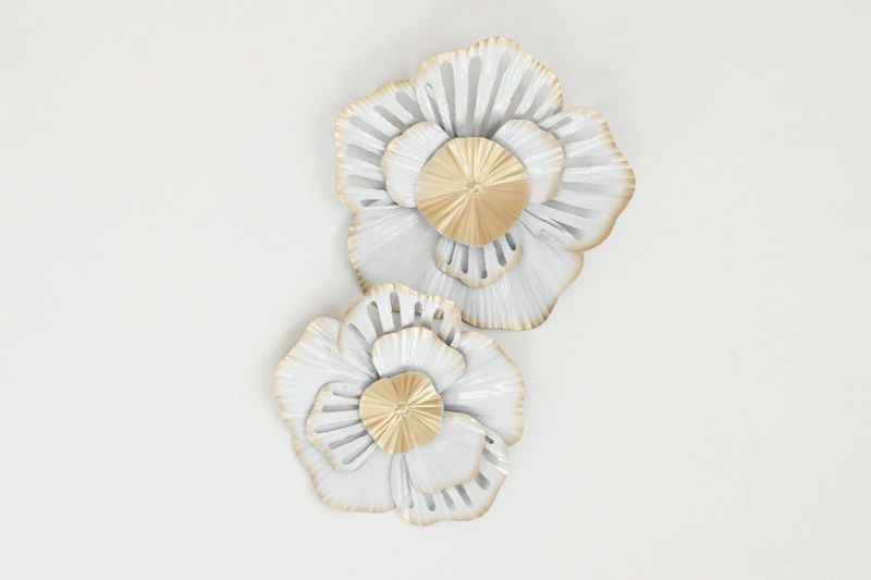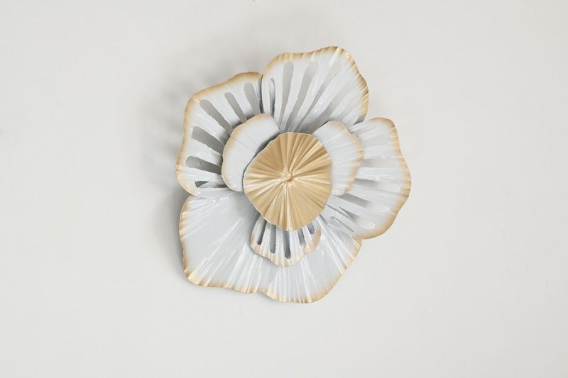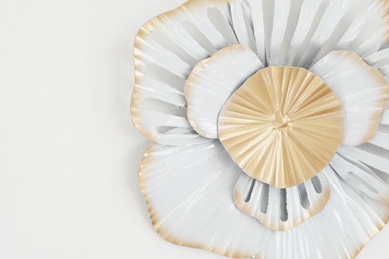 ポピーやアネモネを思わせる愛らしい花々を、上品な白と金色で彩り、ホテルライクな空間にふさわしい壁掛けデコレーションに仕上げました。