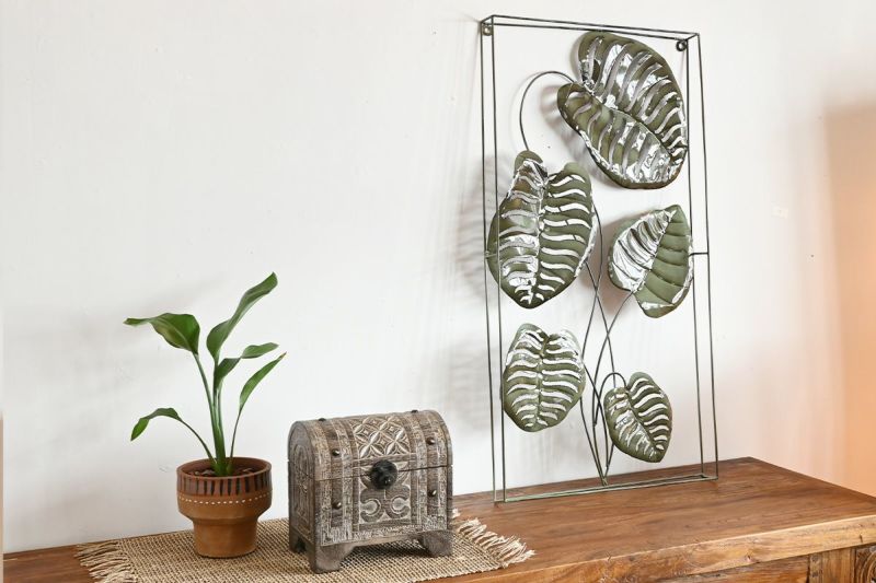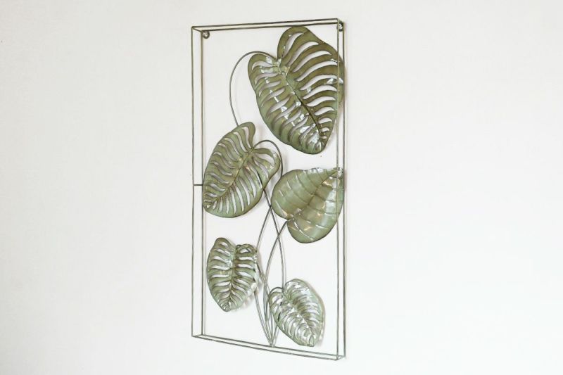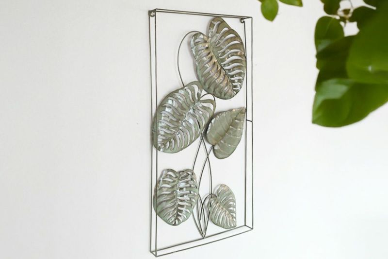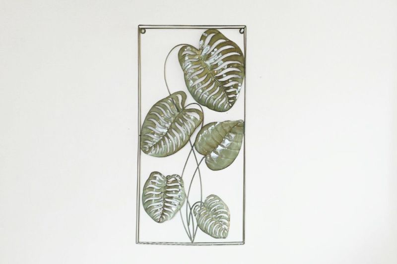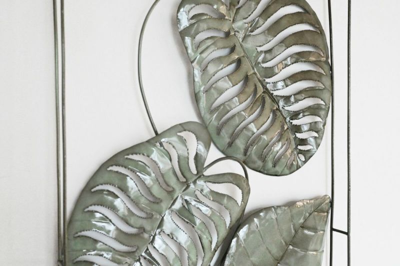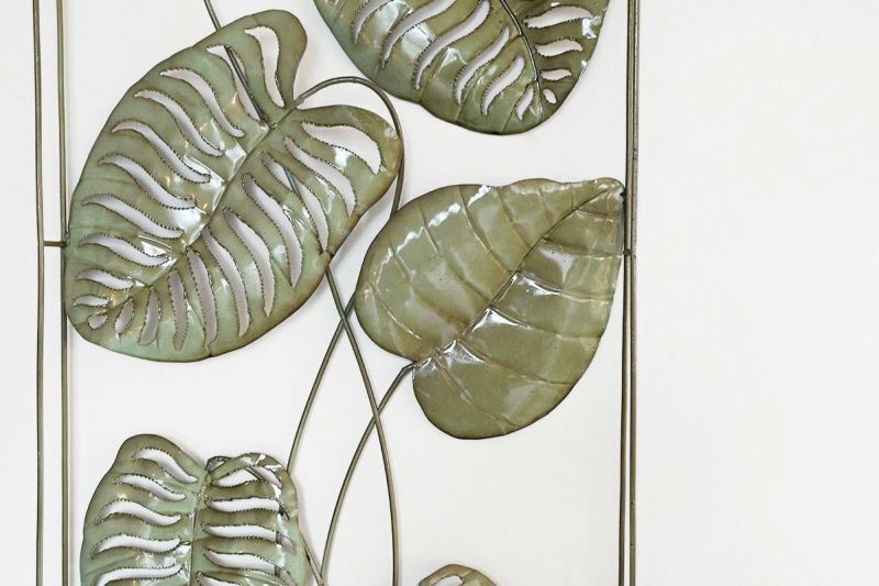 立体的に作られたメタルアートは、光の加減によって陰影が出るので時間や季節によっても違った表情を楽しめます。ボタニカルモチーフはナチュラルなインテリアからカフェ風、ホテルライクなスタイルまで様々な空間に馴染みます。