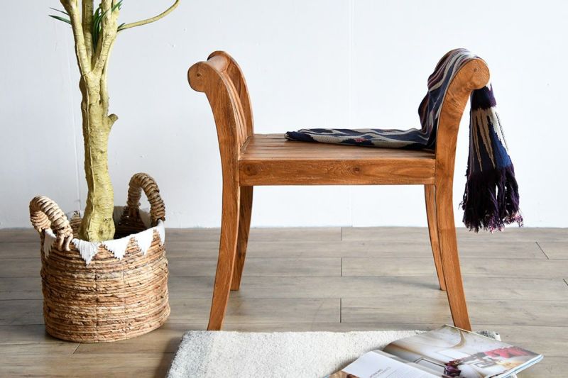 両端の持ち上がりが特徴で、バリ島では有名なデザインであるこのカルティニベンチ。リゾートホテルのエントランスや室内に置かれることも多いので、見たことのある方もいるかもしれません。カルティニとは女性の名前が由来になっています。優美な曲線のデザインは、癒しのリゾート空間にぴったりです。 このBタイプは、カルティニベンチの中でも、座面部分を広めにダイニングテーブルに納まりが良いように、両端部分のカーブを狭くデザインされています。
