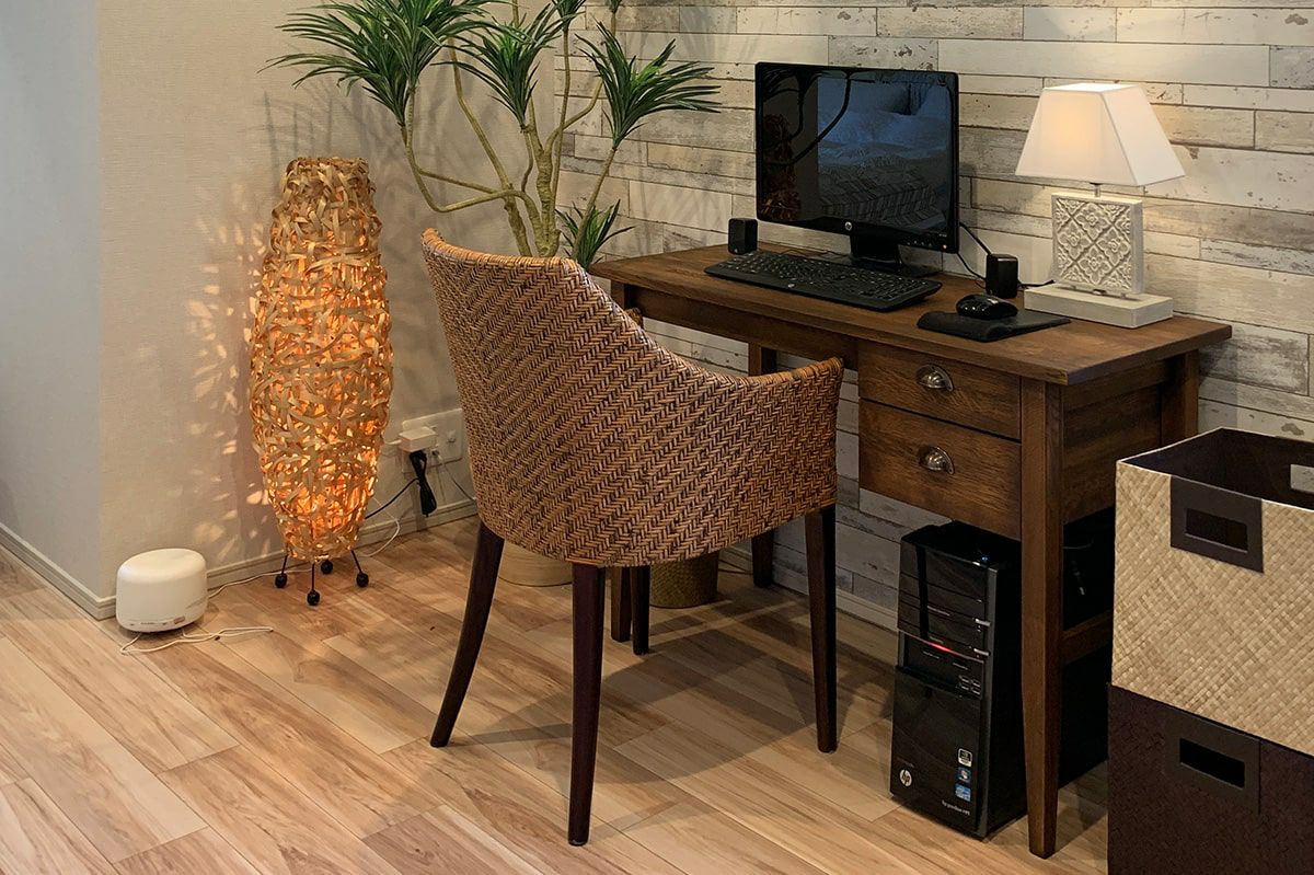 - ベッドルームや廊下、エントランスにおすすめのフロアランプ。メインの照明にプラスして、補助的な明かりとして役立ちます。天然素材を使ったシェードからこぼれる光がやわらかくお部屋に広がり、癒やしの空間を演出します。