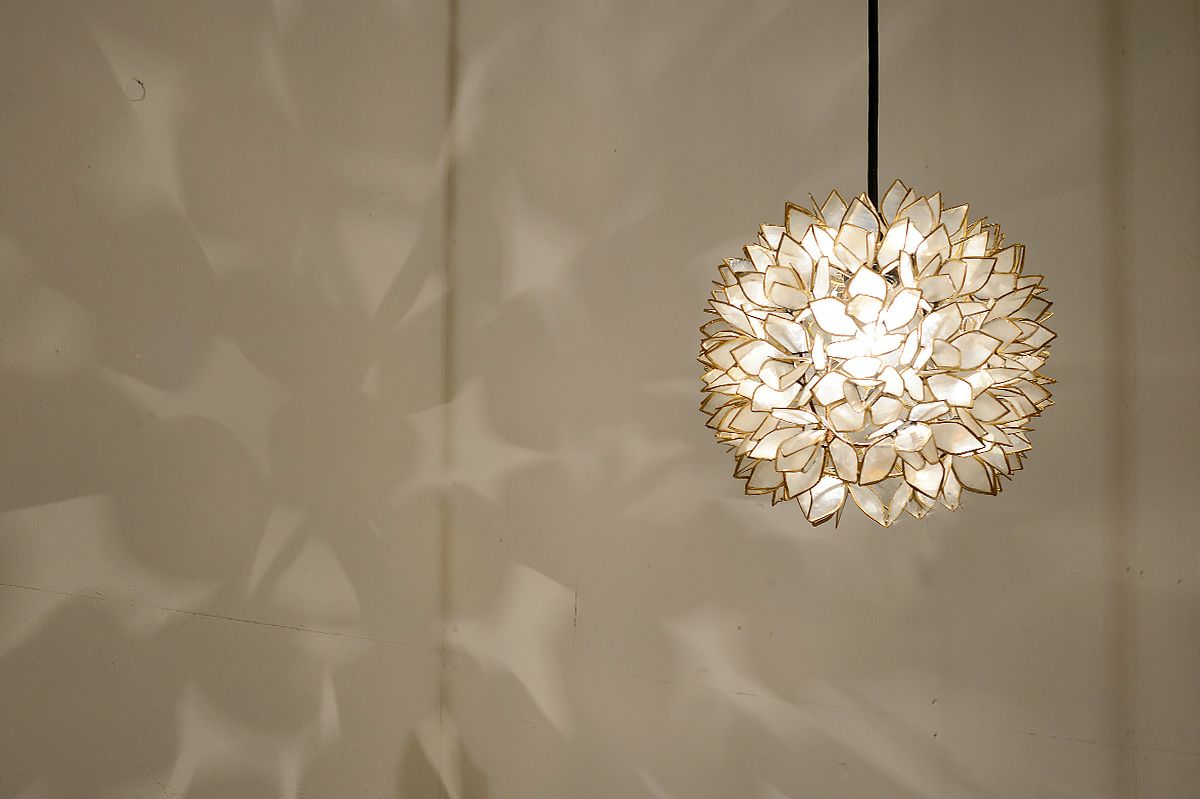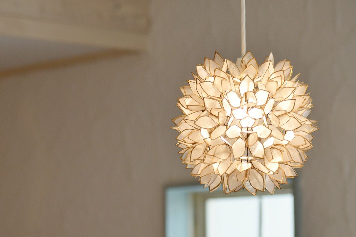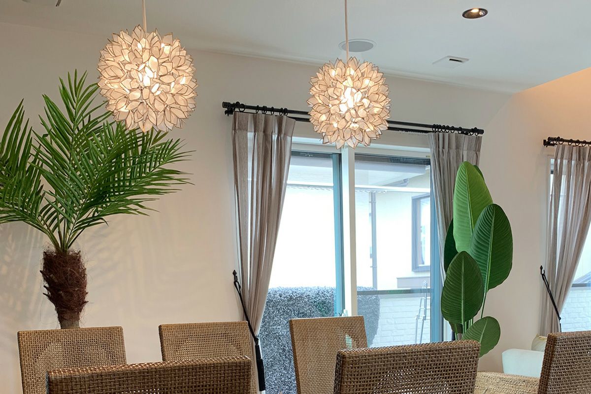 暮らしにリゾートの空気感を取り入れるなら、まず照明から。ナチュラル素材を使った魅力的なペンダントランプの数々は、お部屋を明るく華やかに演出します。常に人気のアイテムは、シェルフラワーランプです。