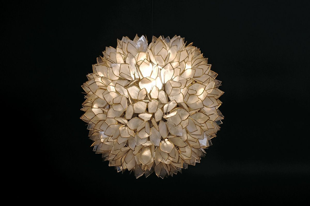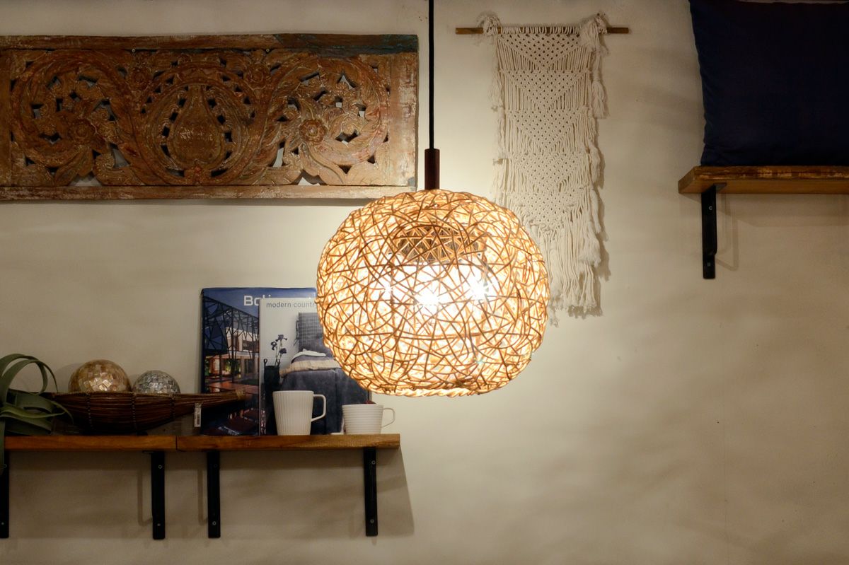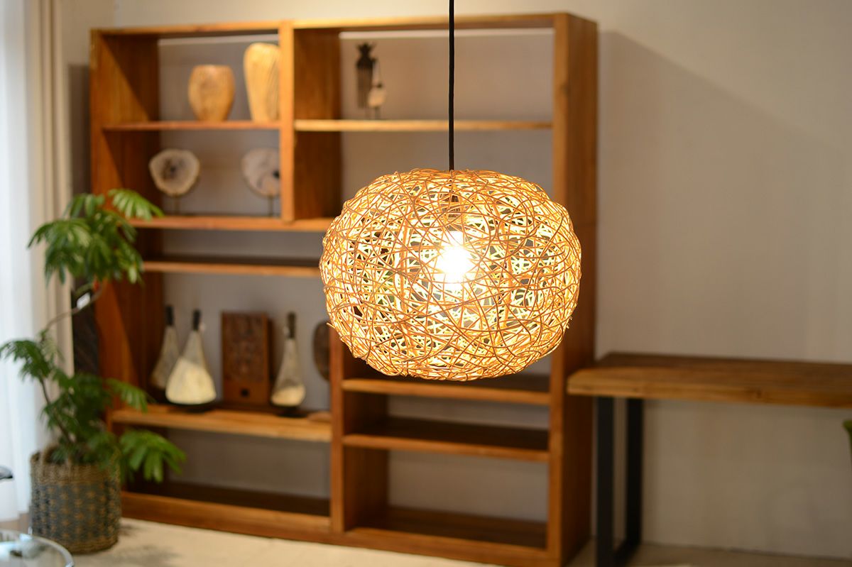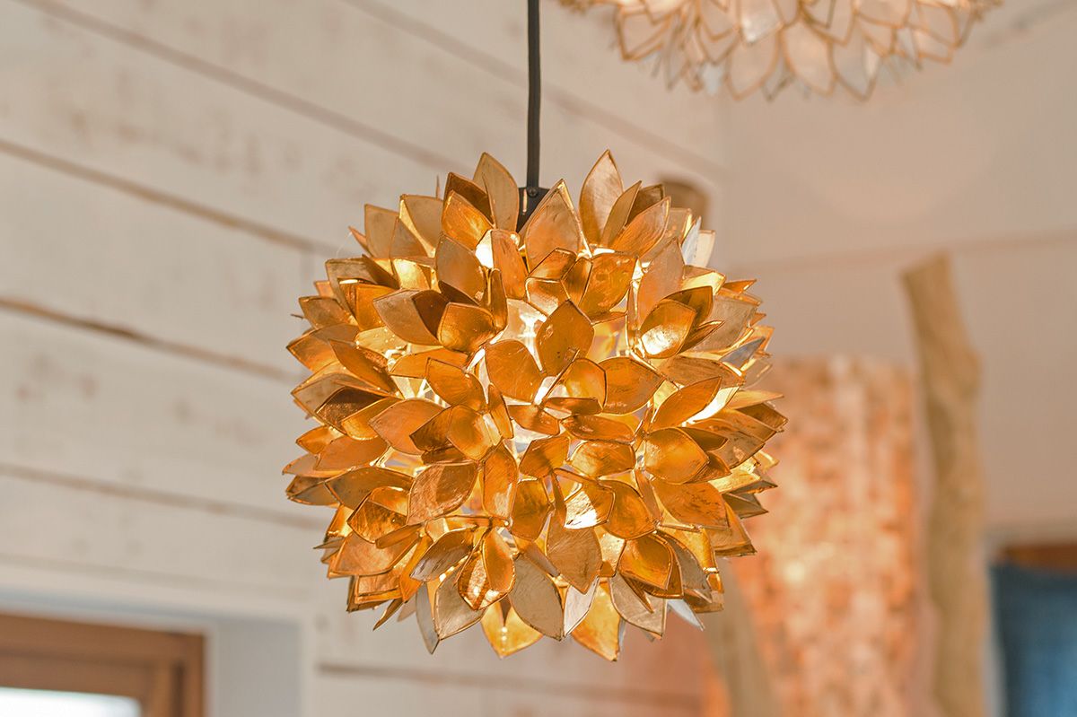 暮らしにリゾートの空気感を取り入れるなら、まず照明から。ナチュラル素材を使った魅力的なペンダントランプの数々は、お部屋を明るく華やかに演出します。常に人気のアイテムは、シェルフラワーランプです。