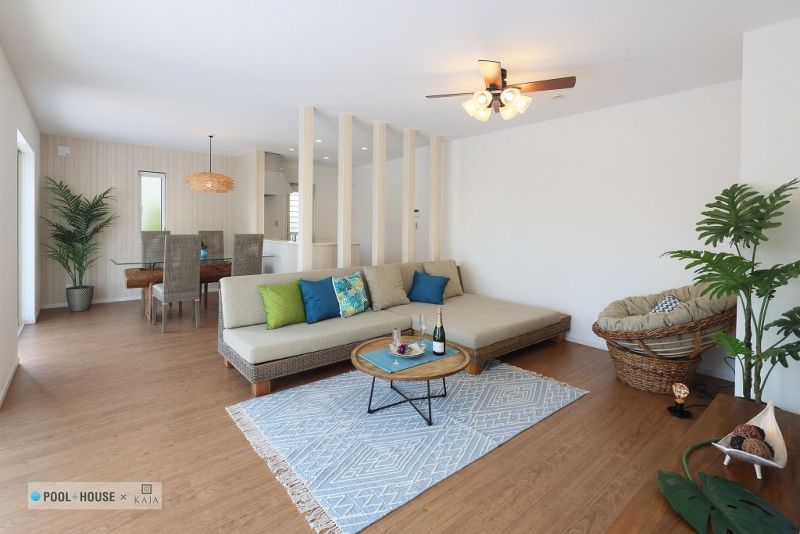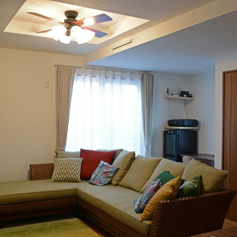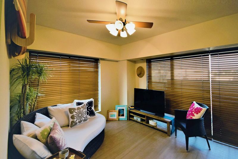 インテリアとしてお部屋の印象をワンランクあげてくれるシーリングファン。回るファンの華やかさが、お部屋を一気にリゾートライクに演出してくれます。