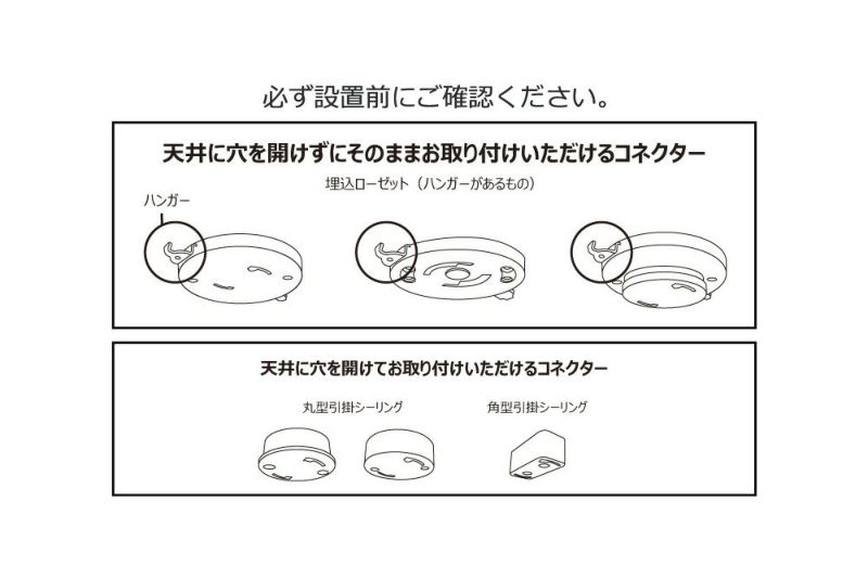 お使いの接続器によりましては、天井に穴を開けてお使いいただけるものもございます。設置前に必ずご確認いただきますようお願いいたします。