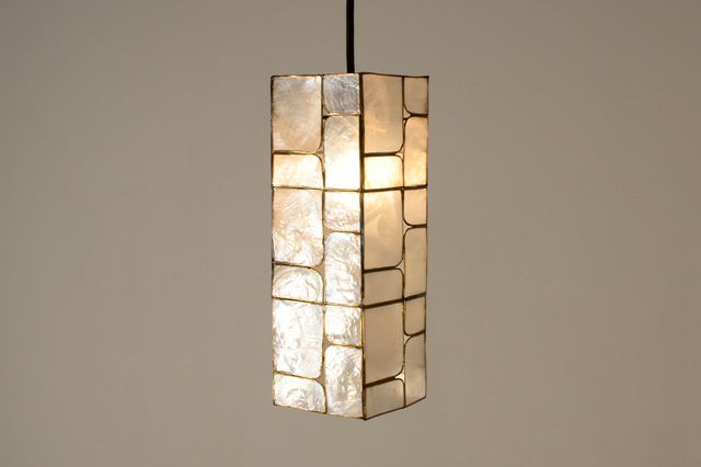 ひとつひとつ丁寧に手作業で加工されるシェル(貝殻)のランプです。天然シェルならではのやさしい透明感と光沢があたたかみのある光を届けます。重なるようにして、形作られるシェルの破片は自然なムラを作り出し、ナチュラル素材ならではのやさしい風合いを感じさせます。ひとつひとつのシェルを大小様々な大きさで四角くカットし、シェード全体に前後に貼り付けています。人工物にはない自然なシェルのきらめきをお楽しみいただけます。