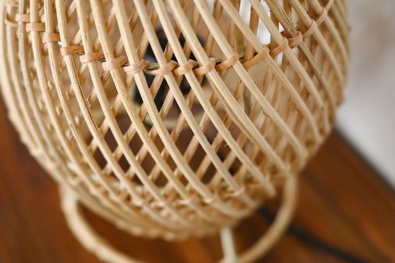 ラタンを編む作業は手仕事によるもの。ハンドメイドならではの温もりがあるランプです。シェードから溢れる陰影が壁面に広がり、幻想的な空間演出になります。電気を付けていない時もナチュラルなラタンの素材感がお部屋を彩ります。