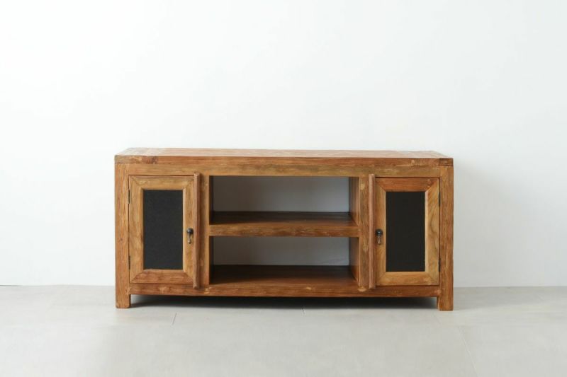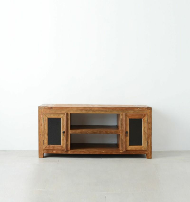 横幅が小さめなので、一人暮らしやワンルームなど、スペースの限られたお部屋にもおすすめです。ガラスを使っているので、圧迫感も少なく、お部屋を広く見せる効果もあります。無垢材の安定感とガラス扉の軽やかさが組合わさった人気のTVボードです。