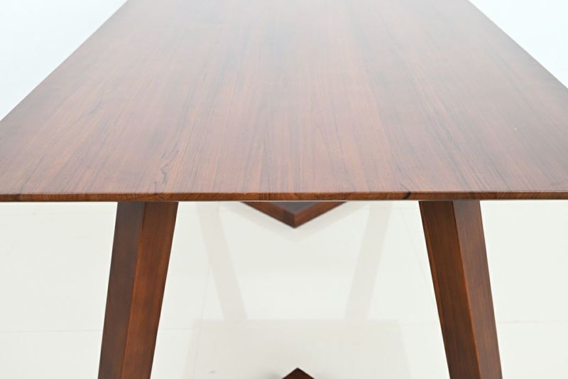 世界三大銘木の一つに数えられるチーク材は、言わずと知れた高級木材。 木目が非常に美しく、堅く頑丈な材質で耐久性に優れたチーク材は近年希少性が高まりつつあります。 こちらのダイニングテーブルはそんなチーク材を贅沢に使用して作られました。