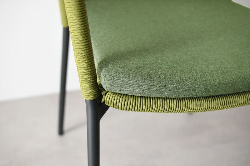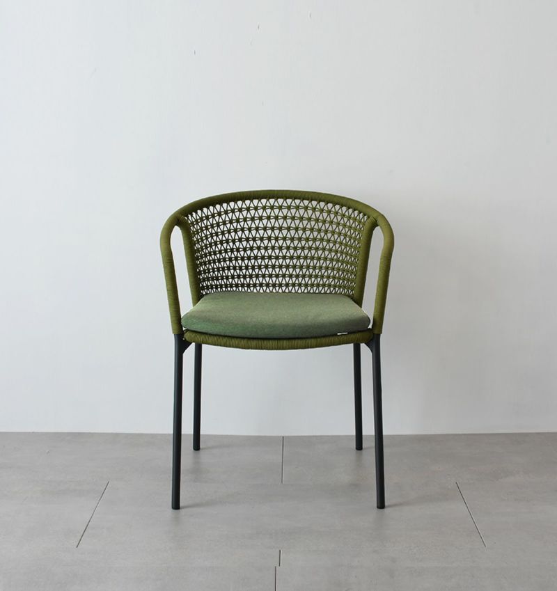 軽量でサビにも強いアルミニウムに耐候性ロープを組み合わせ、職人の手でひとつずつ丁寧に編みこまれた美しい仕上がりのチェア。洗練されたデザインは、どんなデザインのテーブルとも合わせやすいです。