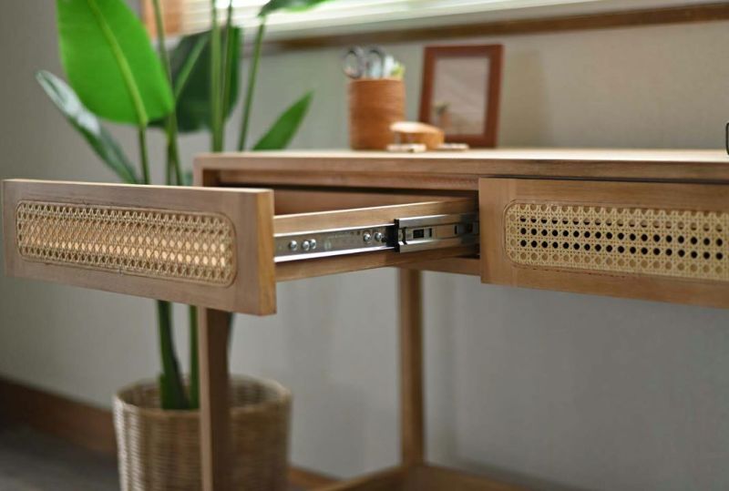 ラタンとチーク材を組み合わせたコンソールデスク