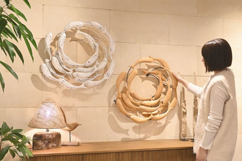 ナチュラルな木の質感と有機的なフォルムが調和して、まるで海辺のリゾートにいるような開放感。リビングの壁に飾るだけで、空間全体がぐっと洗練されます。