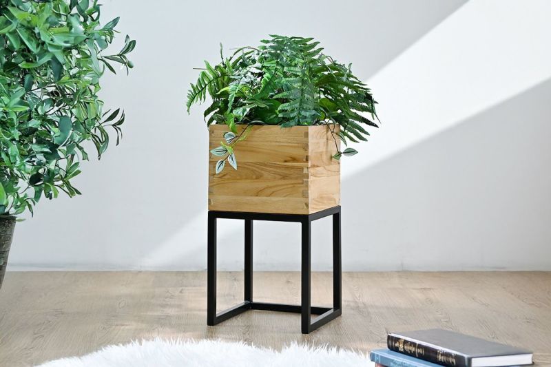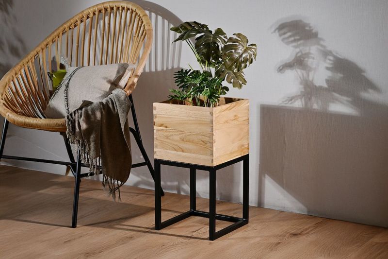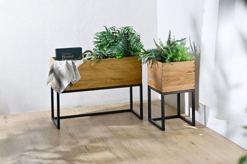 重厚感と温もりを備えた、チーク無垢材のプランターボックス