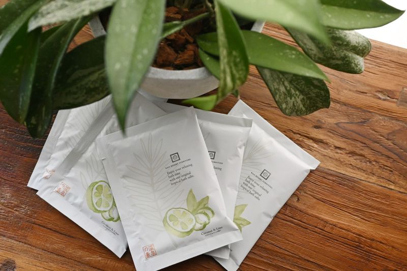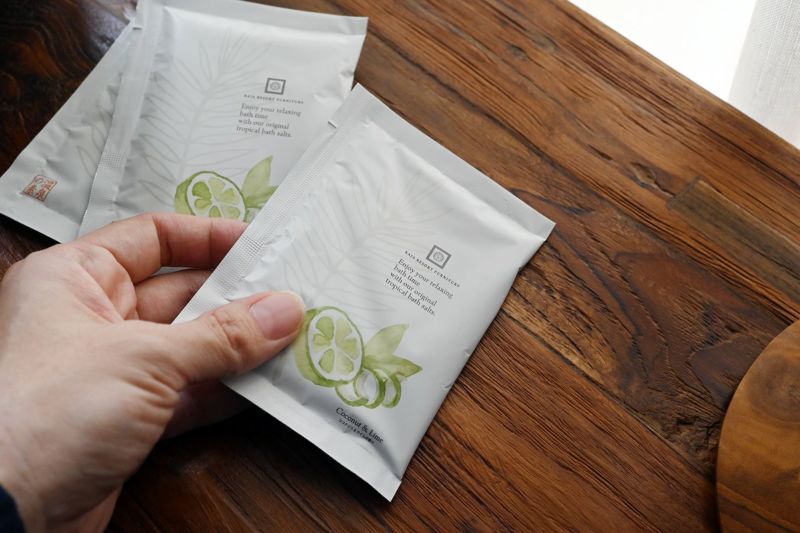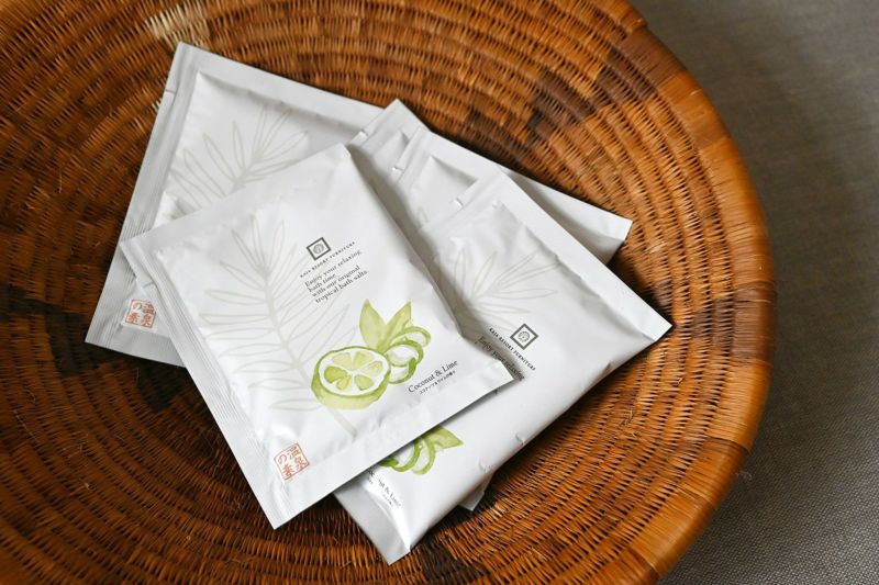 バスルームを癒しの空間に変えるKAJAオリジナルパッケージの入浴剤。ココナッツ&ライムの心地よい香りが広がり、忙しい日々の疲れをそっと癒してくれます。気軽にリゾートには行けないけれど、リゾート気分に浸れる入浴剤です。