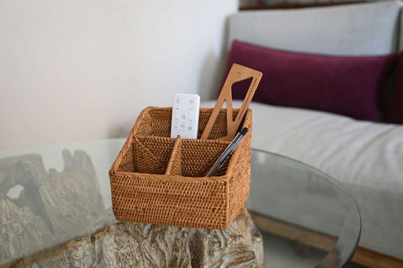 バリ島の熟練職人が一点ずつ丁寧に編み上げた繊細な編み目は、機能性だけでなくインテリアとしての美しさも演出。テーブルの上やデスクまわり、玄関先など、どこに置いても絵になるアイテムです。