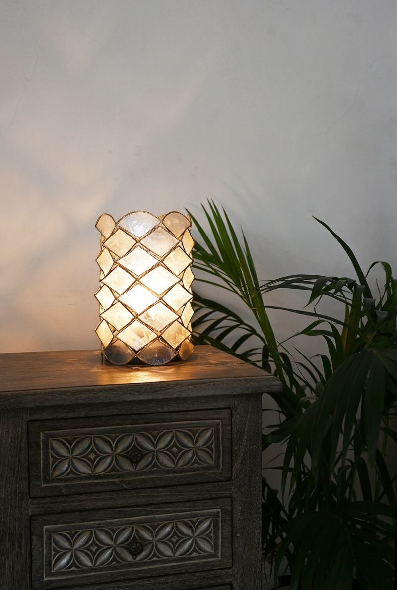 シェルの加工は、職人がひとつひとつ丁寧に手作業で加工しています。ハンドメイドならではの温もりが魅力のひとつです。ベッドサイドやソファサイドに置けば、日常に癒しのひとときをもたらしてくれます。