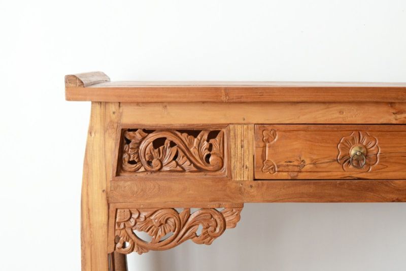 風合いあるレリーフが魅力的な古材のコンソールテーブル