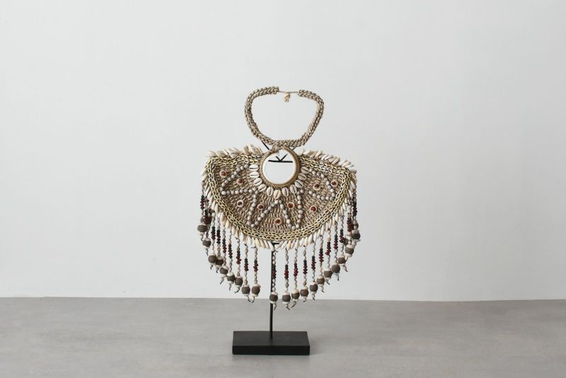 エキゾチックな雰囲気を持つ唯一無二の首飾りのオブジェ。 独特で存在感のあるデザインがインテリアのアクセントとなり、ひとつ置くだけでもお部屋の印象がガラリと変わります。 個性的な空間づくりにおすすめの一点です。