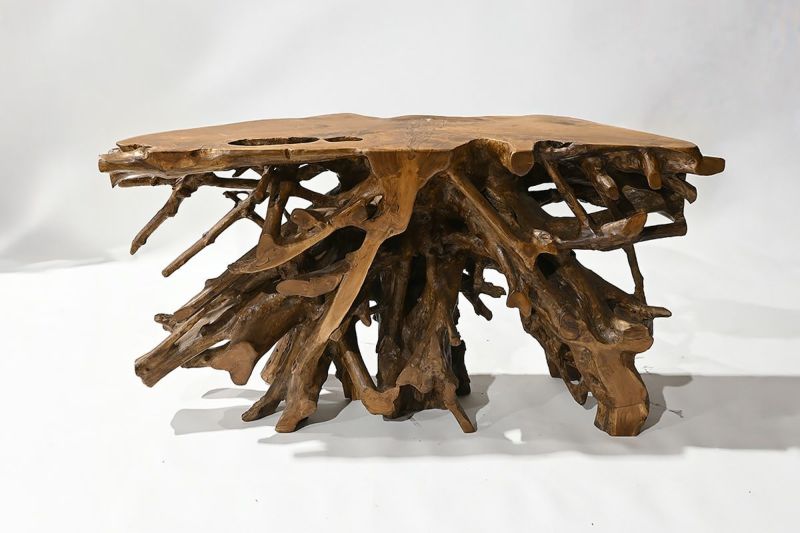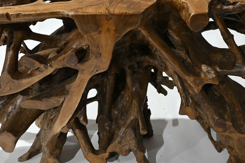 インドネシアの大地で育ったチークの根をそのまま生かしてつくられた、唯一無二のコンソールテーブル。複雑に絡み合うルート(根)のフォルムは、自然が長い年月をかけて育んだ芸術作品。天板もすべてチーク無垢材で仕上げられ、どの角度から見ても美しい表情を楽しめます。