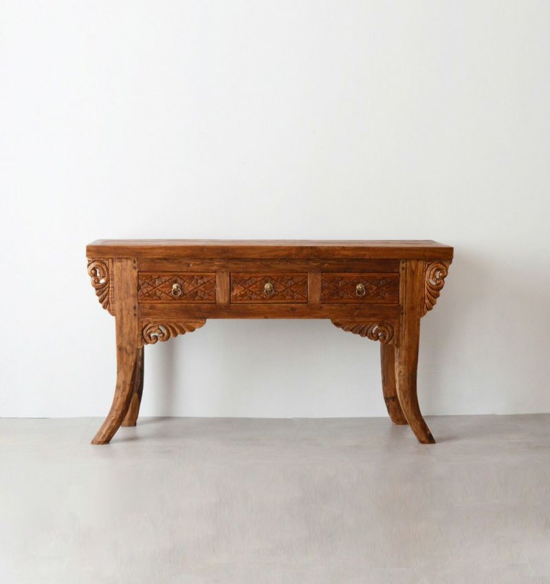 風合いあるレリーフが魅力的な古材のコンソールテーブル
