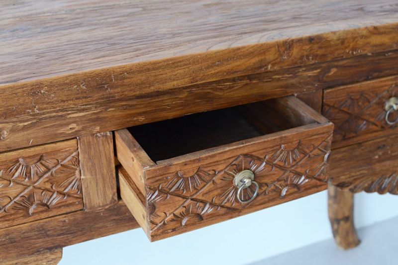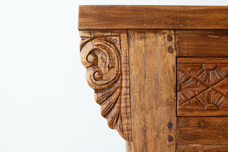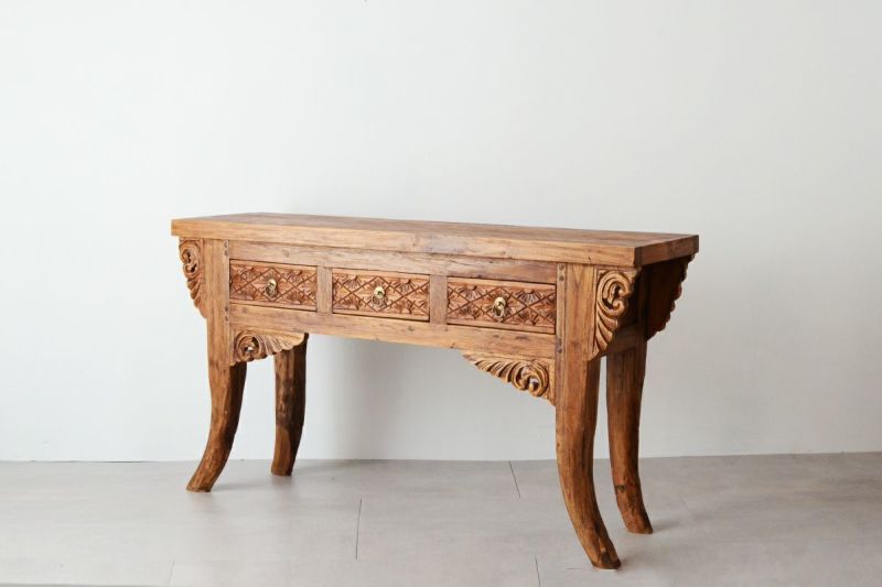 風合いあるレリーフのコンソールテーブルです。ダイニングルームやリビングルームに取り入れれば、インテリア空間のメリハリにもなります。随所に施された職人による手彫りのレリーフが魅力です。引き出しが3つついているので、収納がしやすいです。