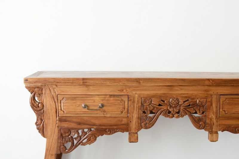 風合いあるレリーフが魅力的な古材のコンソールテーブル