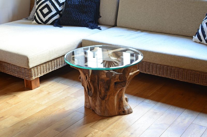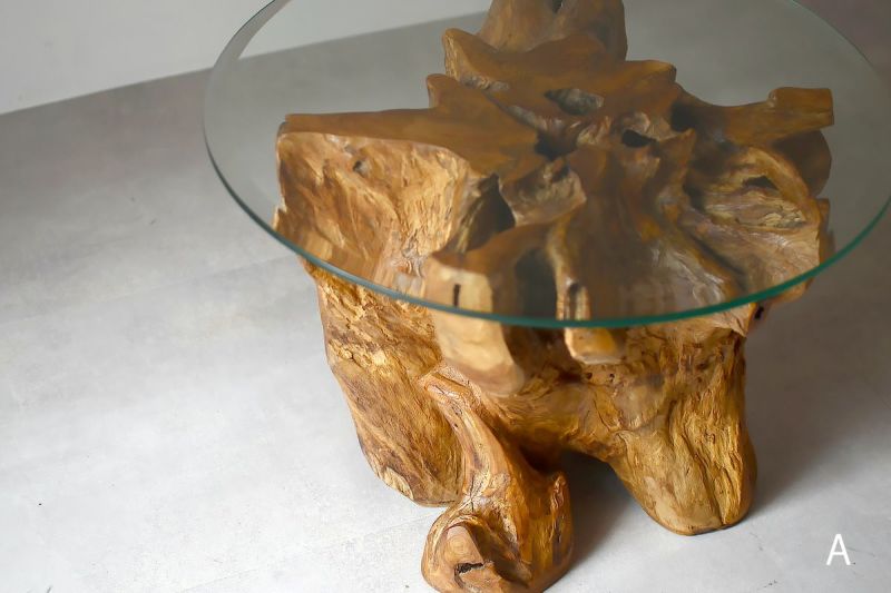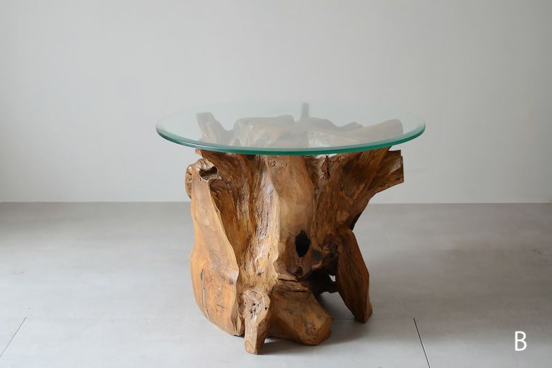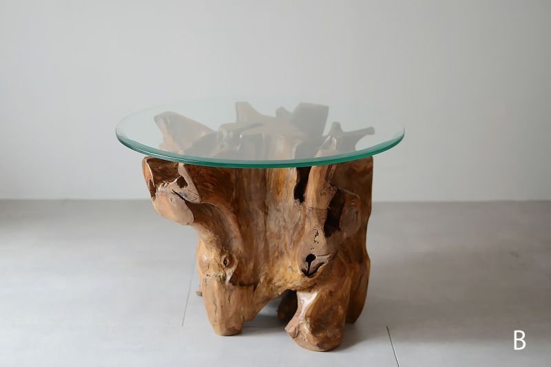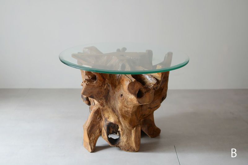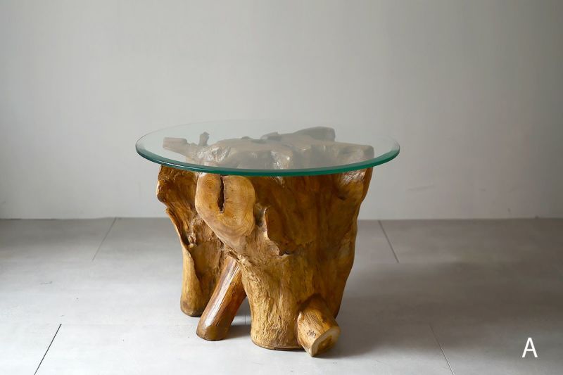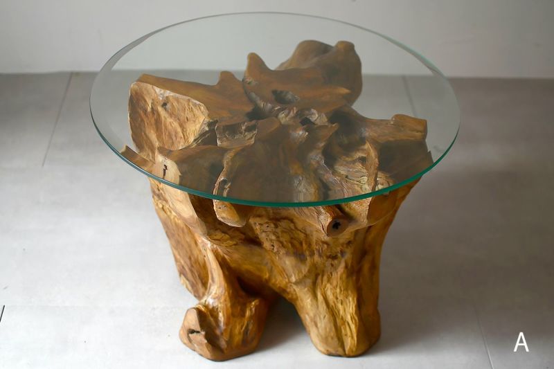 一点ずつ土台の古木の形が異なるテーブルです。ガラスはインドネシアの再生ガラスを使用しています。微かな傷やくすみのある場合もございますが、日常使用に問題ございません。予めご了承ください。