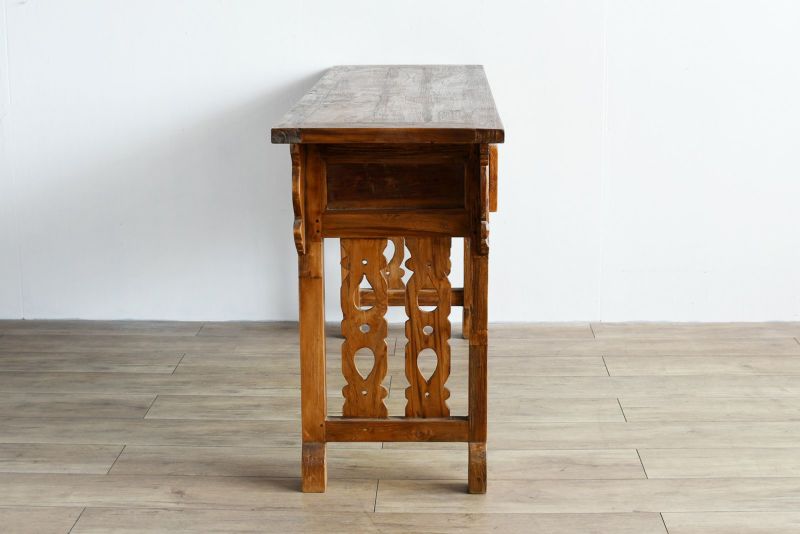 風合いのあるレリーフが魅力的な古材のコンソールテーブル