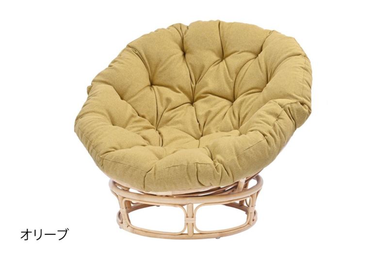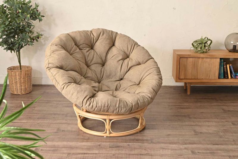 大きなボウル状のデザインは古くからリゾート地域で親しまれてきたパパサンチェアの特徴です。 大きく放射線状に広がったパラボラアンテナのようなデザインの座面と土台がセットになっています。座面は、土台に乗せるタイプなので可動性があり、好きな角度でゆったりできます。 特徴的なデザインと大きいサイズ感で、部屋のアクセントとしてもぴったりなチェアです。 ソファのようにくつろぐことができ、読書や昼寝などさまざまなシーンで重宝します。