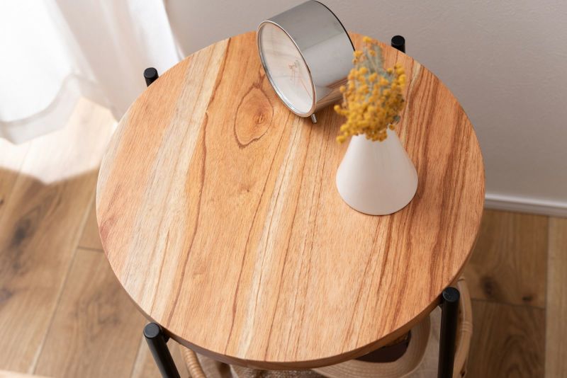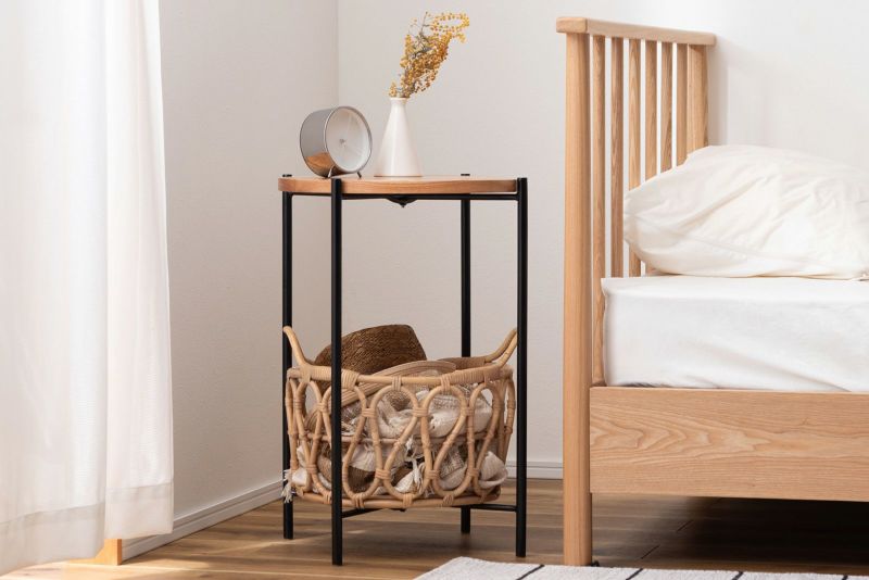バスケットがついているので収納ができます。テーブルとしても収納としても使用できる嬉しいデザインです。 ベットやソファのサイドテーブルとして最適なサイズ感です。
