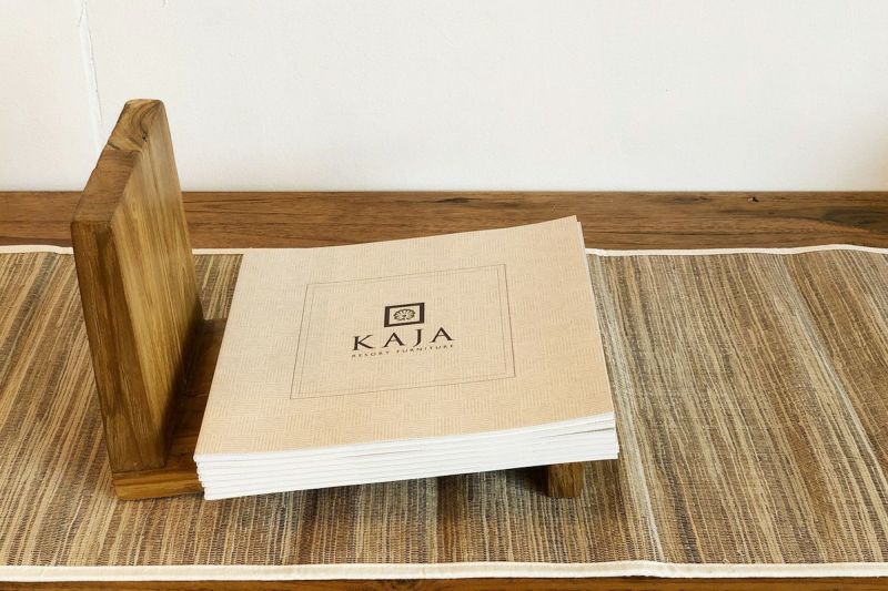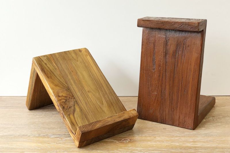 チーク材を使用したブックスタンド。少し斜めにすることで、本が倒れにくく、自然素材にこだわって作り上げるチーク古材の魅力が詰まった逸品。安定感があり、とても丈夫な作りです。