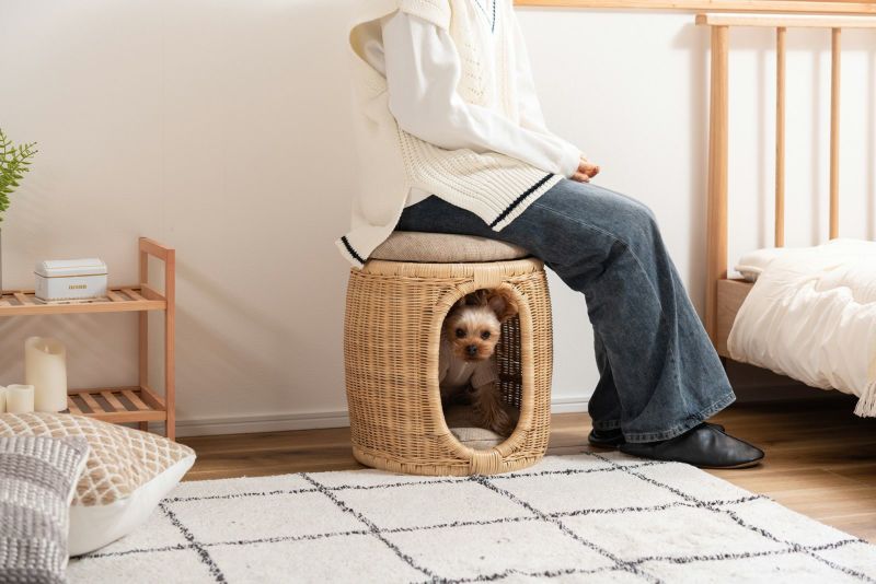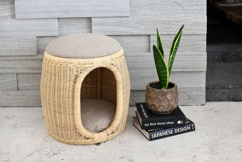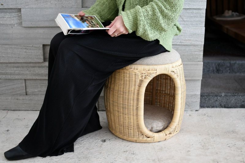 軽やかな編み目と優しい色味のペットスツール。 シンプルなので空間に馴染みやすく、サイズ感もちょうど良い商品です。