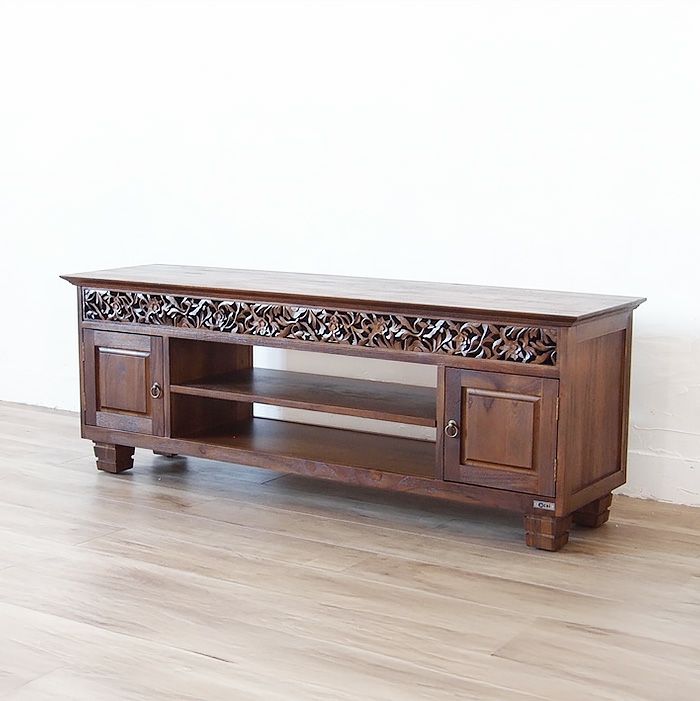 毎日の食卓をバリ島のエスニックな癒やしのアジアン空間に。 チークの無垢材を贅沢に使用したアジアンテイストのテレビ台。 テレビ台の上部には手彫の彫刻を施した 高級感溢れるデザインです。