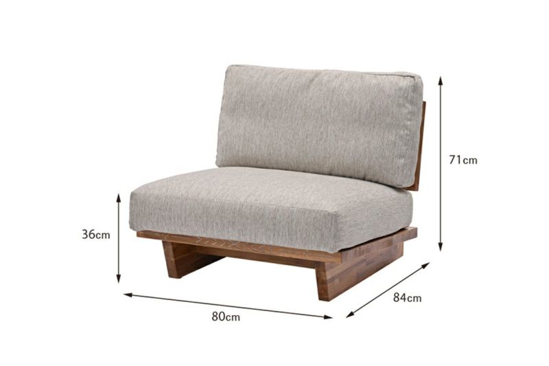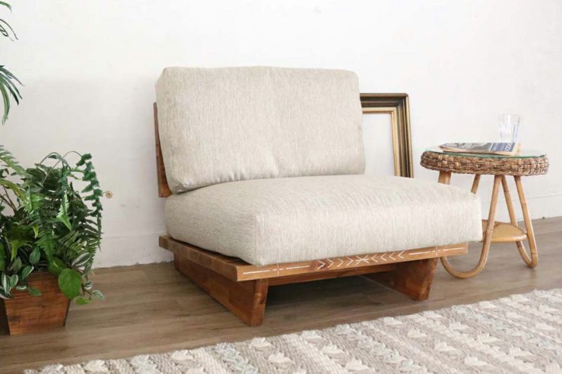 横幅80cmサイズ、肘掛けもなくゆったりとくつろげる幅広サイズ。 まるで常夏のハワイで過ごすように、リラックスしてお過ごしいただけます。 また複数並べて2人掛け、3人掛けと用途に合わせて様々な形でお使いいただけます。