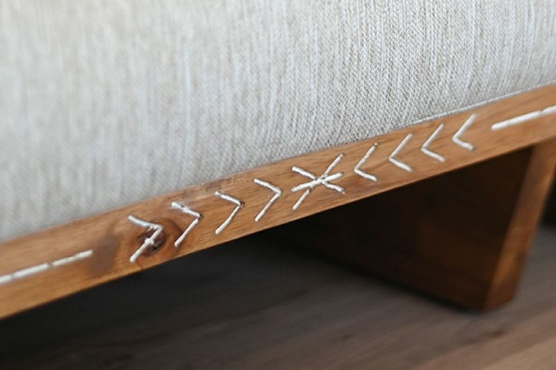 ハワイのプランテーションハウスのような、気取らずリラックス感があるカジュアルなソファ。 ハワイのタトゥーをイメージした白い彫り模様がデザインのアクセントに。 独特な存在感がありつつ、自然と調和する個性派インテリア。